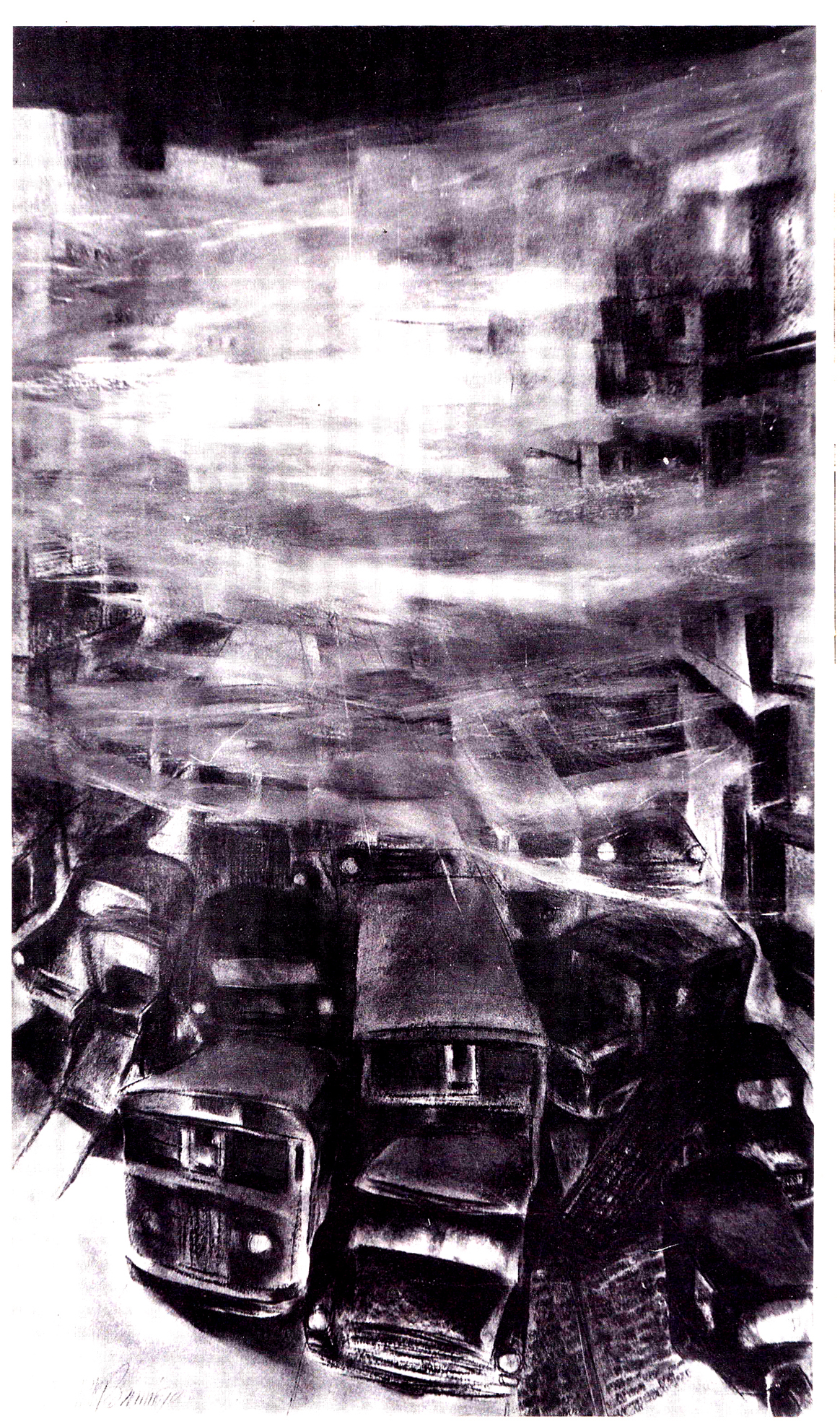 The same aura is reinforced in the empty rooftops of a city where the ubiquitous crows perch on parapets and wires. The artist avers that in Calcutta one cannot ignore the crow. Intricately etched lines of these birds with unruffled feathers and pugnacious expressions contain layers of signifiers. In the trajectory of his life as an artist activist, Shuvaprasanna relationship with the metropolis he inhabited was intimate and deep. As a young man, the city appealed to his aesthetic senses, with its sudden vistas of green amidst the dull stretches of endless streets and buildings. From the tram car, as it trundled past the Maidan, he glimpsed the monument towering overhead and the multitudes of people below, a giant patchwork of colours and activities, then, in the distance, he spied the regal fade of the Grand Hotel, standing just a little apart, reluctant almost to be part of the hustle bustle around.