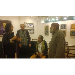 Painter Shuvaprasanna (L) with Renuka Choudhary (2nd form left), Union Minister for Tourism, at the Art Alive Gallery in Pancheel Park, New Delhi, on the 12th of January 2006